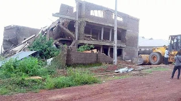 The demolished building is located inside the estate, Obasanjo Hilltop, named after ex-President Olusegun Obasanjo by the state government; and located along the Presidential Boulevard, Abeokuta, the state capital.
