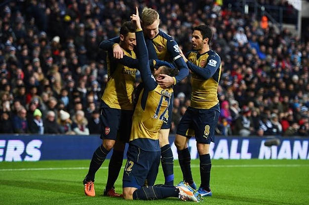 West Brom came from behind to beat Arsenal on a wretched afternoon for the Gunners as Santi Cazorla blew a late penalty in astonishing fashion and they lost two more stars injured. The Gunners took the lead when their French striker Olivier Giroud headed in Mesut Ozil's free-kick in the 28th minute. But Albion hit back from a free-kick of their own when James Morrison cleverly flicked in Chris Brunt's delivery in the 35th minute. The hosts went into the break ahead after Mikel Arteta diverted in James McClean's low cross in the 40th minute for an own goal.